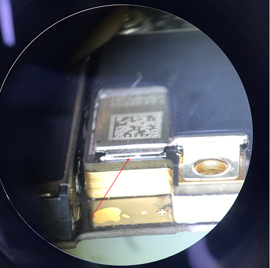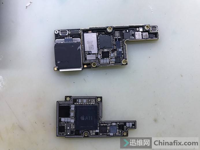 Next, disassemble the machine, take down the motherboard, and find that there are traces of maintenance, and shielding cover on vibration power amplifier chip U5200 has traces of disassembly.