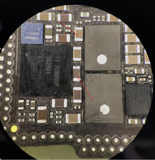 Check the motherboard separate to see if the charging booster Inductor is damaged and cracked, and no abnormality is found under the microscope. Then, let’s test whether it is Inductor Inveracious Soldering. When the sealing glue around the charging booster Inductor is processed, C3316 and C3391 Capacitor Inveracious Soldering fall off. Combined with the above, we found that the charging booster Inductor.Then it may be that when the circuit of vibrating power amplifier chip U5200 was repaired before, the sealing element of charging and boosting Inductor was blown to Inveracious Soldering.