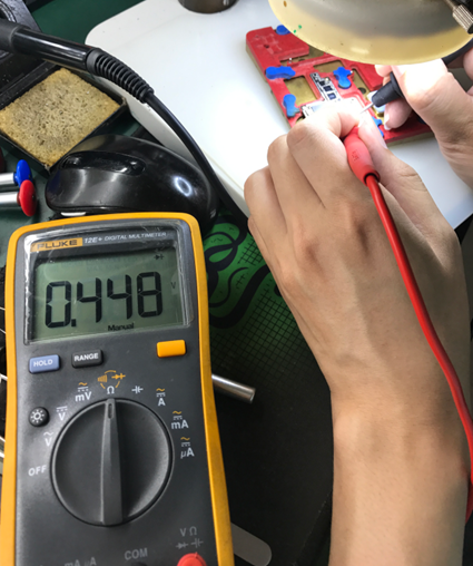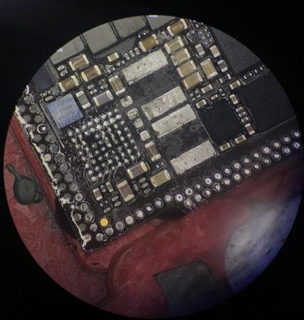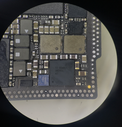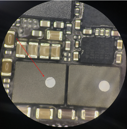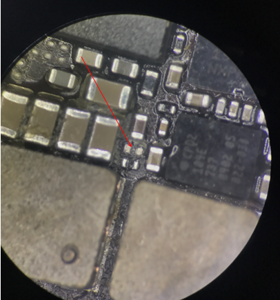 First, remove Accessories, and the replacement failure is still the same. Dismantle the main board separate, and observe under the microscope that the charging Inductor has broken.