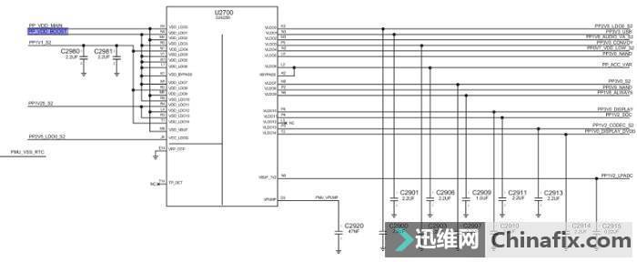 Then, open schematic, find schematic of power management chip, combine Boardview, and measure each input and output of power management chip separately.