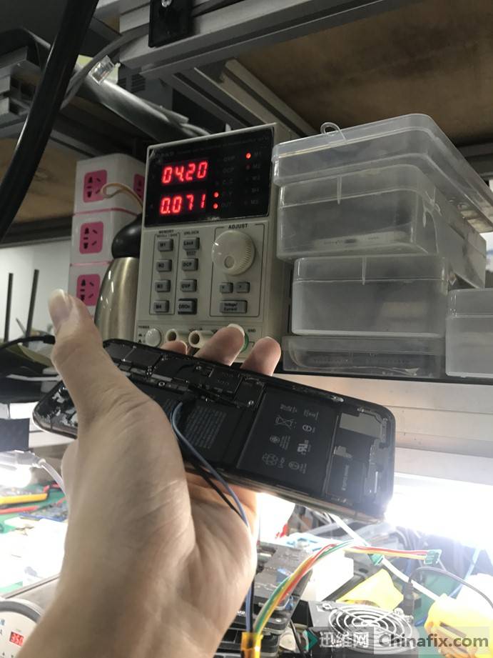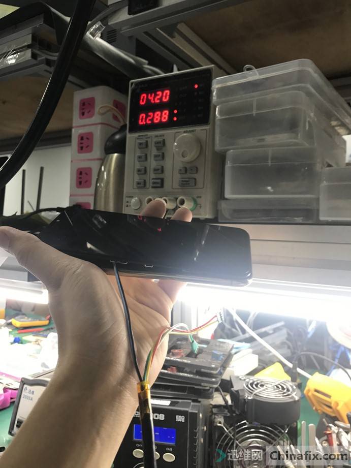 According to the prompt,Face ID can’t be used because of too high temperature. If the temperature is too high, it is very likely that there is Short circuit, and the temperature control detection circuit detects an abnormality. So that the function cannot be used. Then we disassemble the machine to check whether there is Short circuit, disassemble the machine, connect DC power supply to start up and find that switch 288 mA jumped, which seems to be the correct judgment.Where there is Short circuit.
