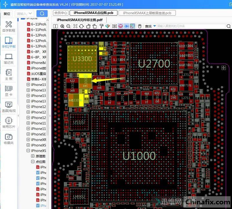 The iPhone XS Max mobile phone does not display intermittently, and there is no resistance value when the display reset is measured, which indicates that the board layer is broken. Through the board layer wiring diagram made by Xinzhi, the board flying wire is scratched, and the fault is solved.