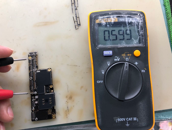 Connect DC power supply, turn on the key contact with tweezers switch, and there is no current response, indicating that the problem is on the motherboard, and turn on the key contact BTB connector diode value.