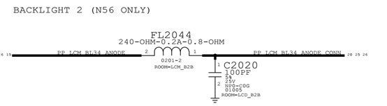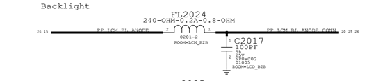 This situation indicates that the booster VCC is insufficient.schematic knows that U1580 (backlight chip) outputs VCC to display Fuse through VCC Inductor FL2044. U1502 (backlight chip) outputs VCC Inductor FL2024 to display Fuse, which can be connected by two VCC Inductor Jump wire.