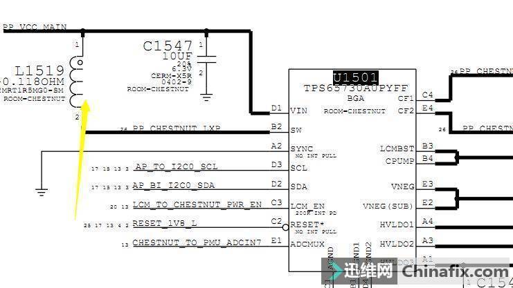 Now, the boot current is normal and there is no display. Start with displaying VCC, showing that VCC has positive and negative 5.7V touch, 5.1V bootstrap boost and 6V, etc. When the screen is connected for boot measurement, it is found that there is no VCC, and the working conditions of the chip are not met. Let’s change the chip first, in case the chip itself is broken. After changing it on, the amount of VCC is still the same. It doesn’t seem that simple.Check the chip condition. Remove the chip Measuring diode value. The test shows that the B2 angle of IC U1501 has no value, which is normally more than 300.
