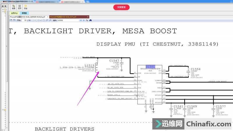 Backlight IC crystal was smashed, and one Capacitor was lost. In this case, it must be removed directly first.  The chip itself is fragile, and it is easy to be damaged by bumping off the corner. Remove the chip directly,  and then power on.DC power supply displays 00,short-circuit current troubleshooting. According to the start-up current of more than 70 MA, slowly turn current of change to more than 1A, and see that current change is normal, and there is no display or backlight in the screen connection test, and the original fault is restored.