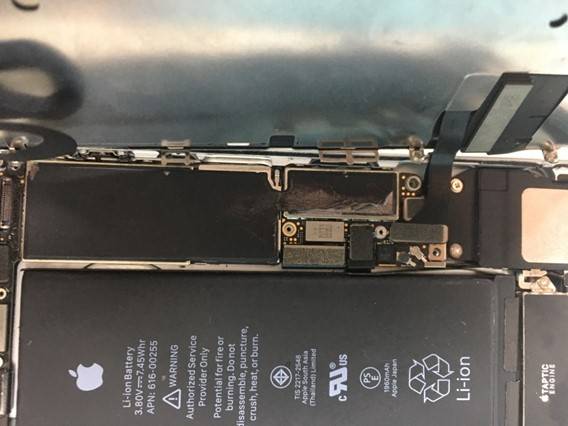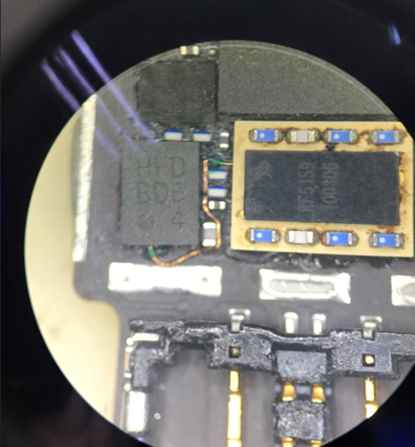 Dismantling the machine, it was found that the integrated Inductor M2800 had been modified, which was suspected to be caused by insufficient voltage boosting. This integrated Inductor was responsible for boosting backlight, charging, vibration and sound.