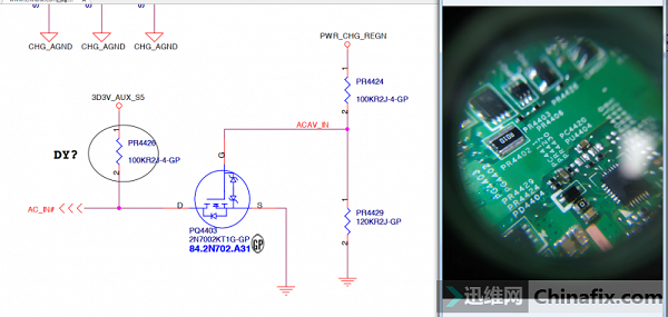 Measure the working condition of the charging chip, 24780. The first signal ACOK 0V, disconnecting the node, is also 0V. The problem is on the charging chip side.