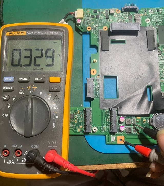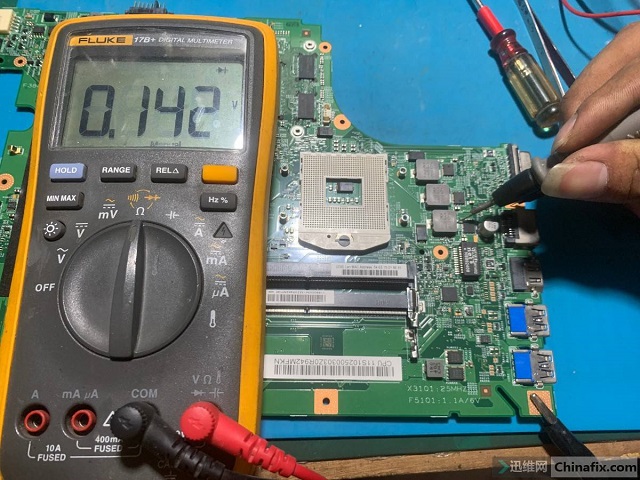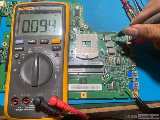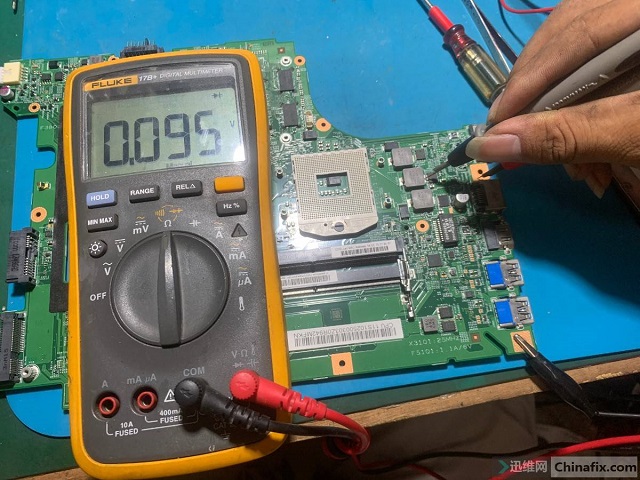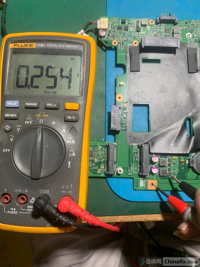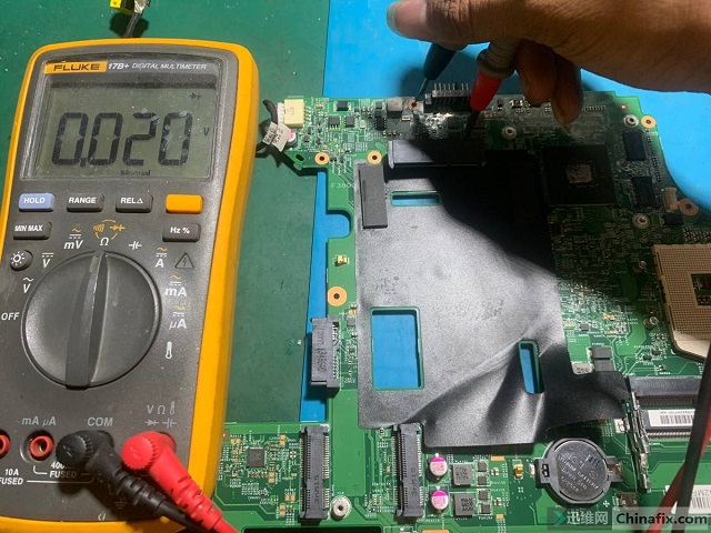 Maintenance process: Disassemble the machine, the board number is LA-58,multimeter diode red pen GND starts typing diode value.
