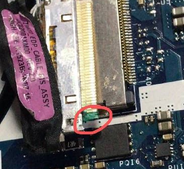 By disassembling the screen wire and marking the value, it is found that the screen excuse is the 40th pin, the screen wire 380 is not installed, the screen wire is short-circuited, and the green oil directly covers the 40th pin of the screen wire.