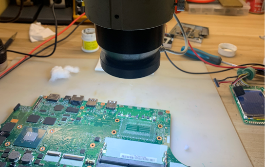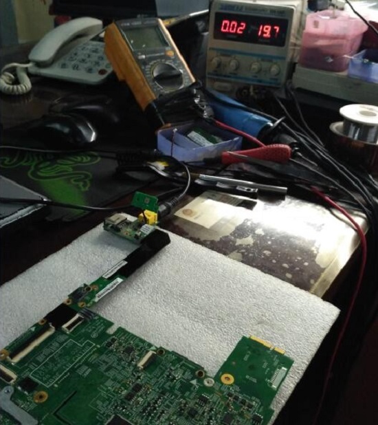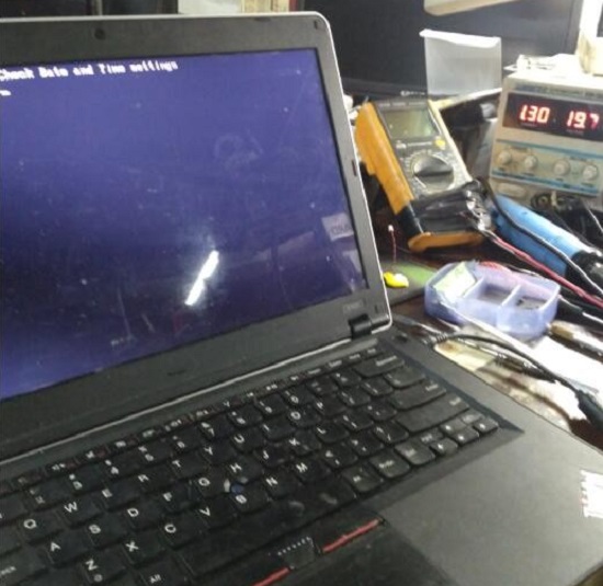 Lenovo e425 notebook no power on, add add solder line short-circuit up, the screen has shown, this