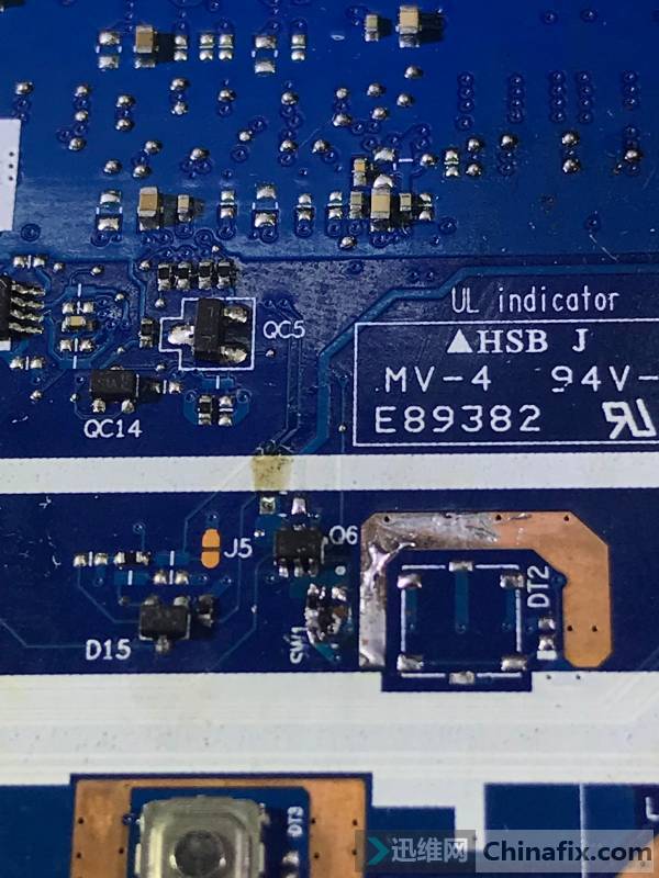MOSFET 2n7002k, composite n-tube, with two n-tube structure inside, and then see the resistance r157 connected with its 6 pin. Because one end of water damage has been desoldered by corrode, replace the resistance, and power on, it is found that the wave noise is still the same. Then, check that MOSFET 2 pin has VCC current of change, but failed to pull down 6 pin VCC to 0V, indicating that MOSFET should be broken, replace Q6.