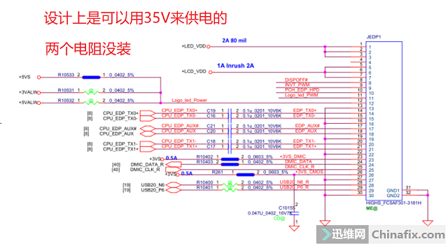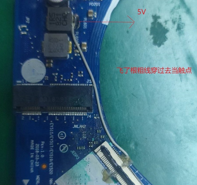 Maintenance process: disassemble the computer to smell burnt, remove the motherboard and find that the screen line is obviously burnt. Each Inductor is connected to the ground Diode value is normal, and it is powered on. Without Connect the power supply pool, it is large current of 2A. There are still current of change in 2A, which must be the problem at the interface. The screen burned out two pin, but it felt fine.