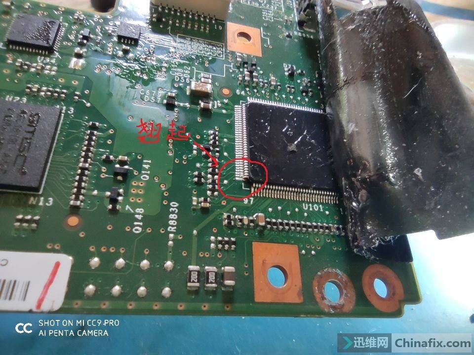 Solder U101 96PIN back, send a booting up drawing, and the maintenance is over.