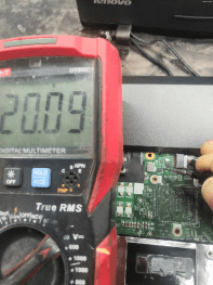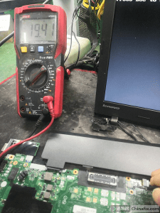 Measure the motherboard, and first test whether the common point VCC is normal. It is found that 20V is only 19.4V, so the fault range can be judged.