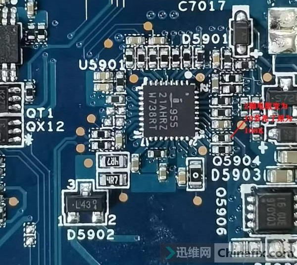 As a result, it was found that the capacitor of the power supply pin filter of the CPU power supply chip was short-circuited at fault point C6705. After the replacement, the resistance of the common point became more than 400 ohms. After power-on, the notebook can be turned on normally, but it was found that the battery could not be charged. Both the battery and the adapter can be turned on, and the battery can be found, but it cannot be charged.