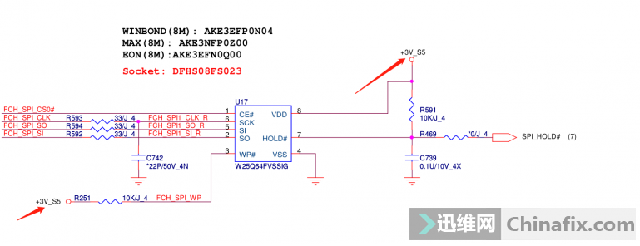 Disassemble the machine and measure the power supply without short circuit. The standby voltage of 3V and 5V is normal. When measuring the eighth pin and the third pin of the BIOS, it is found that it is only 1.7V, which should be 3.3V normally.