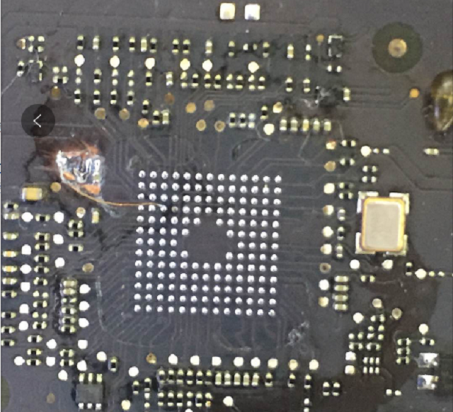 Jump wire, fix it on Solder Mask, solder the original EC on REBALLING again, plug in the power supply current of 0.6-0.8-0.7, and turn it on.