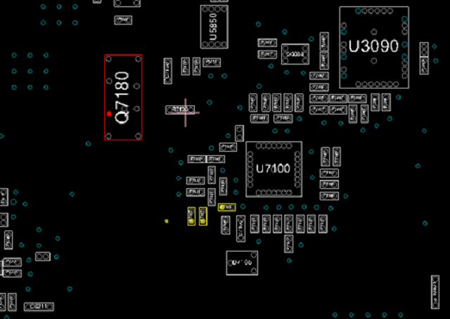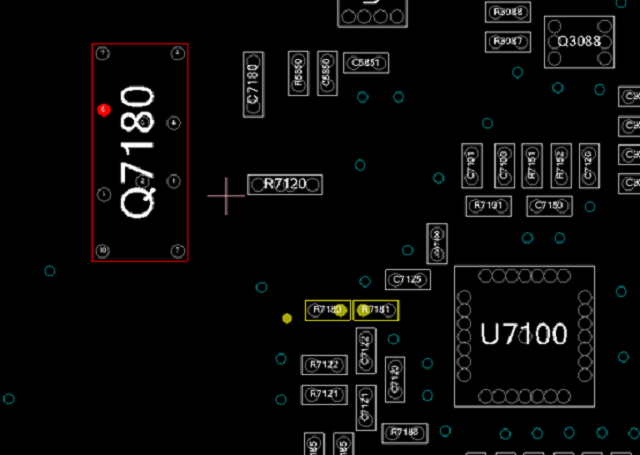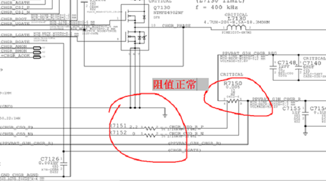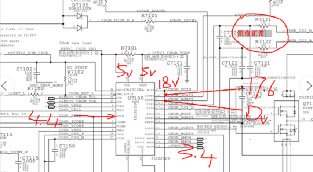 Q7180 double MOSFET G poles, the first MOSFET G pole is 7.4V, the second MOSFET G pole is 17V, which is wrong here, normally it is 7V or so, and this signal is controlled by ISL6259.