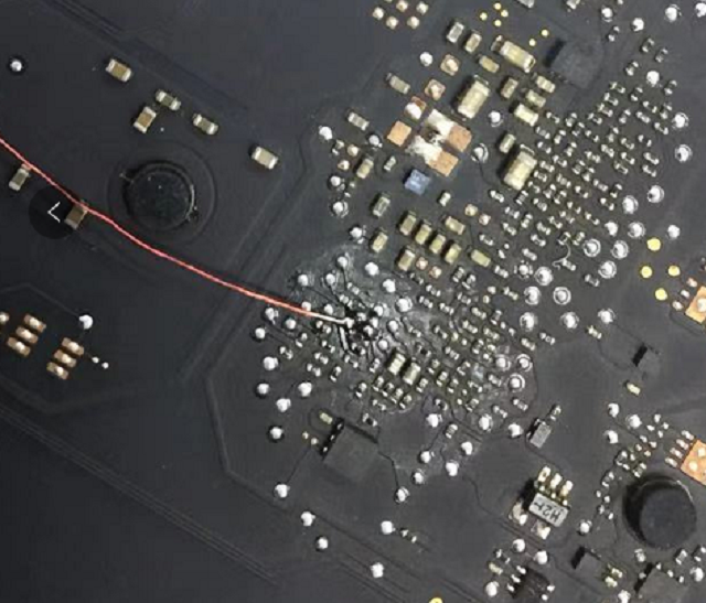 Two days after the customer took it away, there was another problem. There was a sound when the machine was turned on, but the back light was not displayed. Sometimes, the system crashed. It was found that the diode value of PP3V3_S0 to the ground was low, and no abnormality was found elsewhere, except where PAD burned. Dig again to see that diode value was normal, and the boot did not crash, but new problems appeared, and there was no sound, so the sound card could not recognize it.