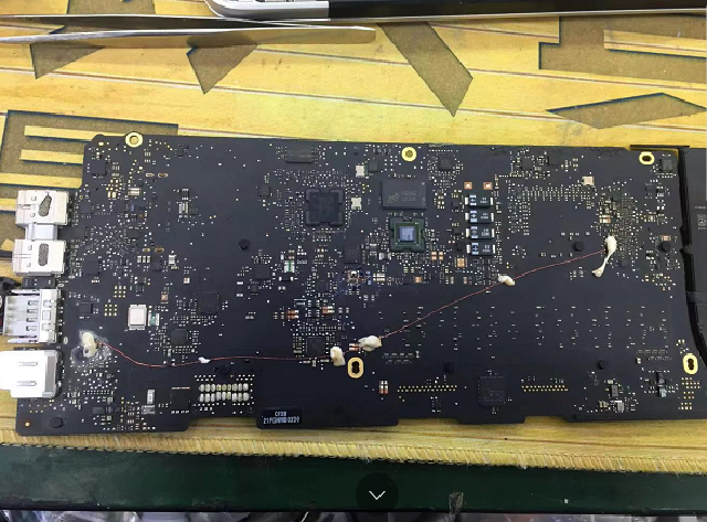 Pv3 _ S0 conversion chip U8030 PAD is burnt, so replace Nand interface U8030,PAD dig out the burnt place, directly from PP3V3_S5 short-circuit to PP3V3_S0. After receiving the rhythm of PAD C3001 boot, everything is normal when the motherboard is installed and boot into the system.