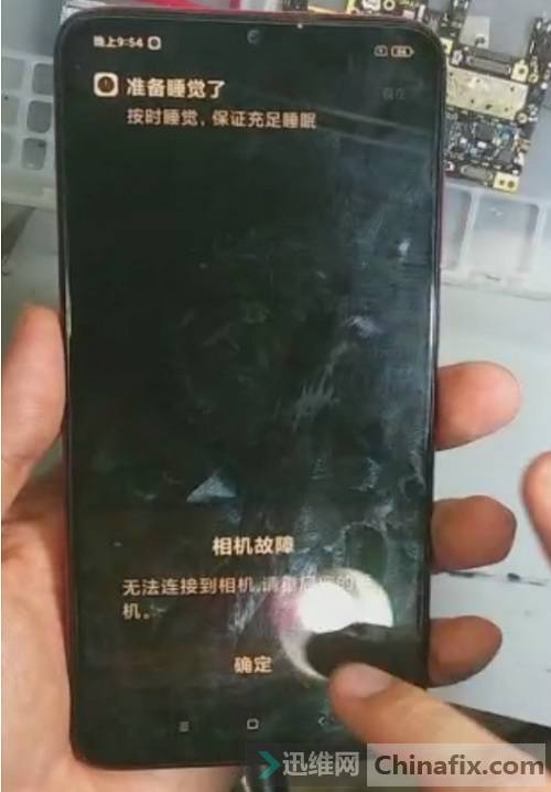 Fault phenomenon: the machine is water damage, open the camera prompt unable to connect to the camera, please restartmobile phone.