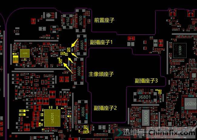 From Boardview, we know that the VCC of the main camera comes from several pentagonal tubes in shielding cover.