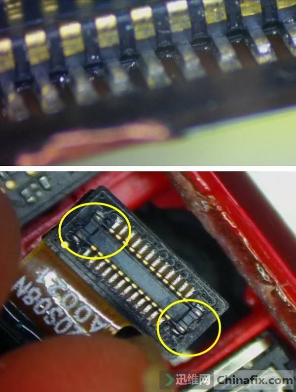 After cleaning, the boot failure still remains.A pin Inveracious Soldering was found after careful observation of the rear main image head BTB connector.