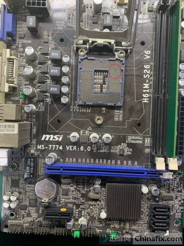 The CPU pin pin of Gigabyte B75 motherboard was broken. One of them was removed from the waste main board and replaced. The power on test showed that booting up was normal.