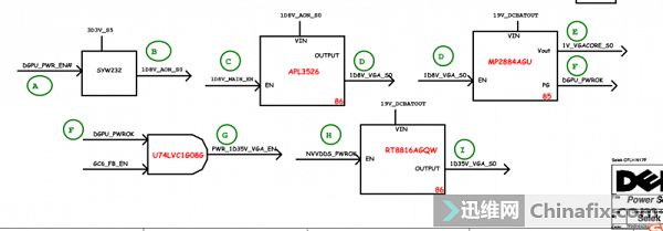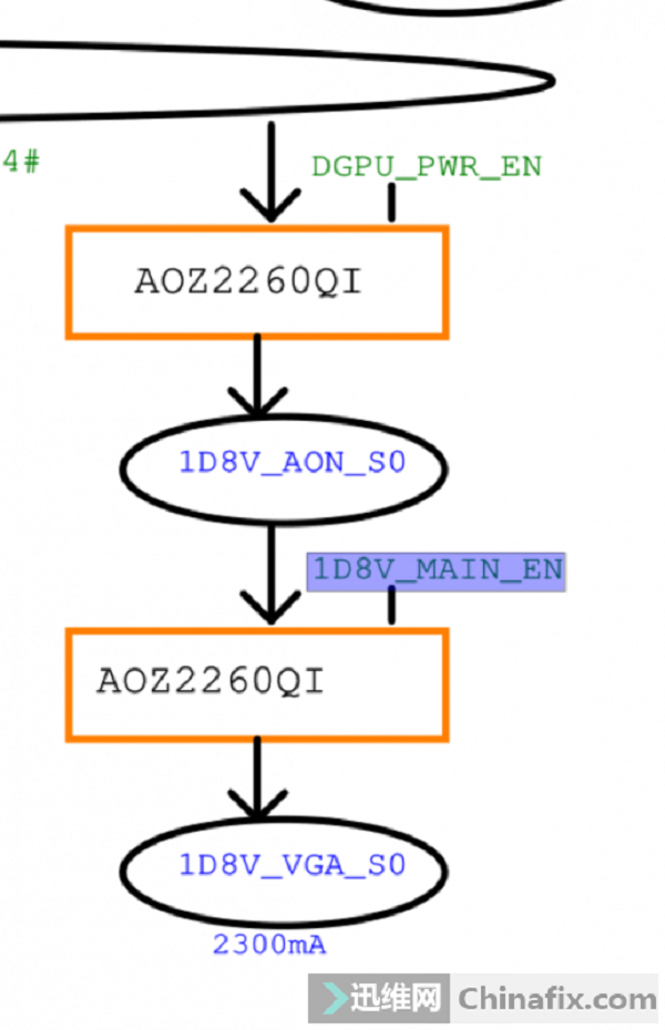 Then I went to Xinzhizao Soft to check the drawings and found that the 1.8V display card core VCC en pin(36 pin) was turned on. To my surprise, the chip VCC of the graphics card was turned on all the time, and pwm1, pwm2 and pwm3 were measured to VCC.