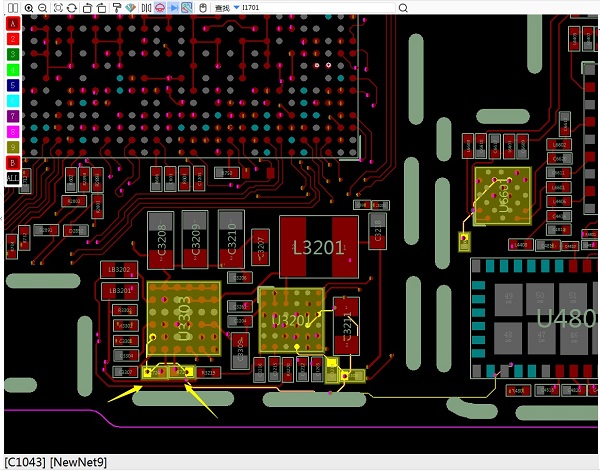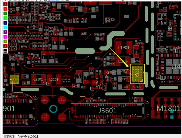 Appearance inspection of motherboard, display ic and inductor have been replaced at home. Borrow a voltage of 1.8V directly according to the pin definition flying wire.