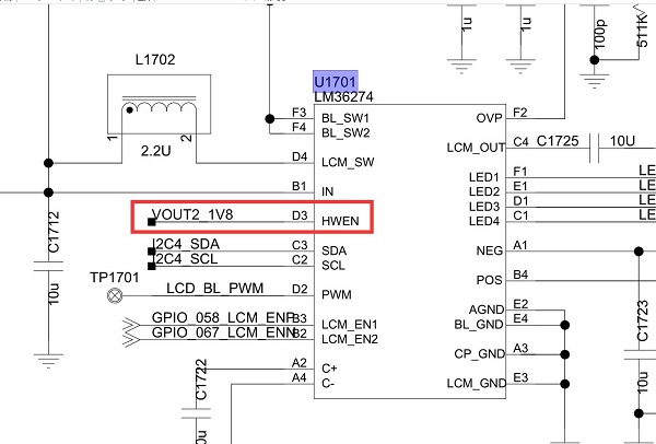 On the schematic diagram of Glory X10, this pin is the BL turn-on signal sent by cpu, but on nova2p, this pin is a 1.8V voltage.