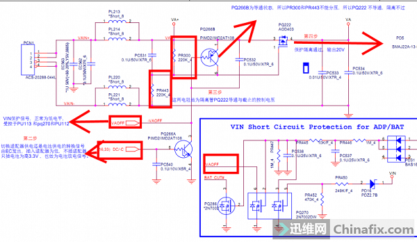 Step 2, when EC detects that the adapter has been inserted, it sends out DC/-C signal, which is low level and directly applied to pin 5 of PQ266A. At this time, it is in the adapter power supply mode.