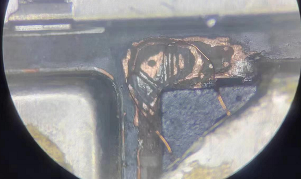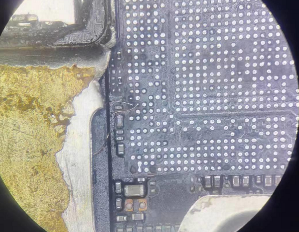 According to customer descriptionmobile phoneIf it has fallen, remove the motherboard to see if there are signs of collapse of the shielding cover, remove the shielding cover to detect if there are any signs of falling parts near the RF, carefully observe if there are no dropped parts or damaged chips, remove the IF and replant it. The fault is still suspected, and the resistance of the chip pad is measured, and it is found that there are two broken corners leading to the CPU pad.
