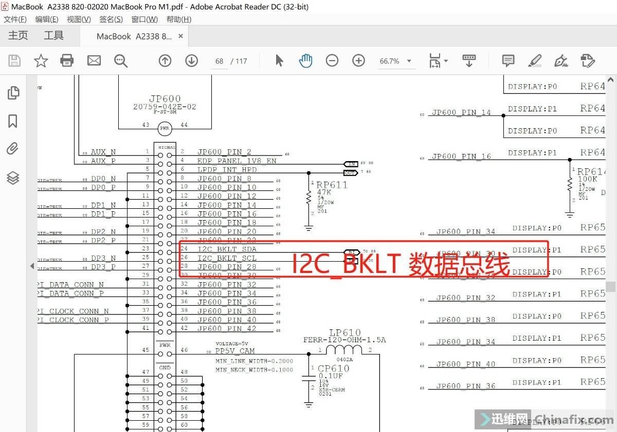 For the key points of the boosting part, the ground impedance tests PPVOUT_LCDBKLT, PP3V3_SW_LCD_CONN, PP5V_SW_LCD_CONN, I2C_BKLT_SCL and I2C_BKLT_SDA are normal, and no abnormality is found.